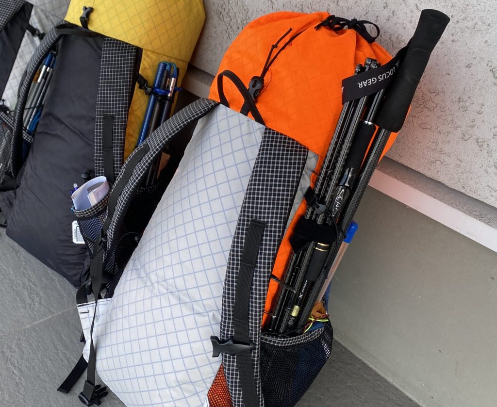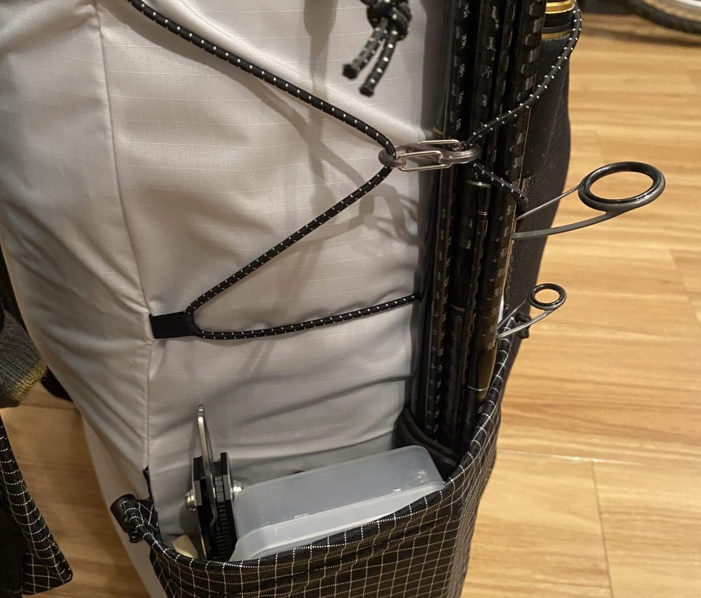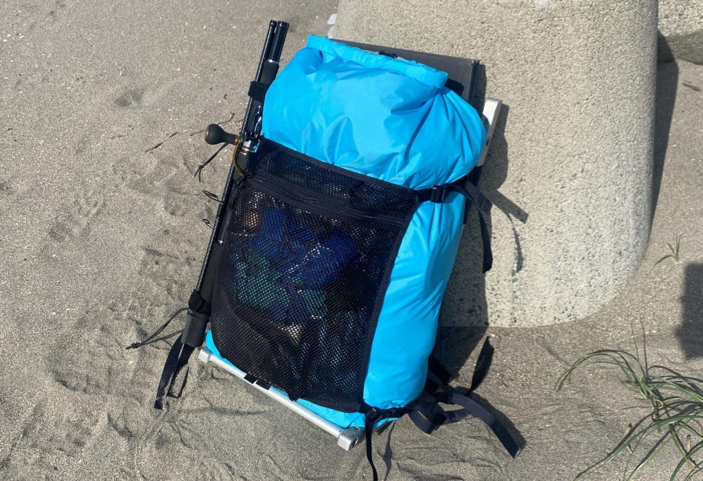 海釣りハイキング バックパックにロッドを取り付けた、タープ泊スタイル