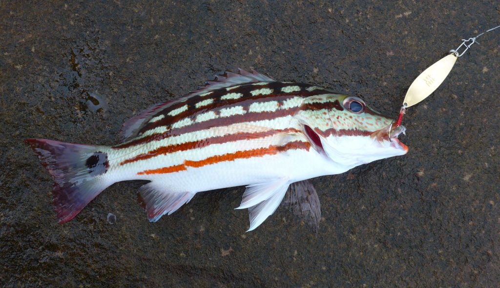 現地で調達した蛙スプーンにも通称「アメリカ」というアミメフエダイが食ってくれた。